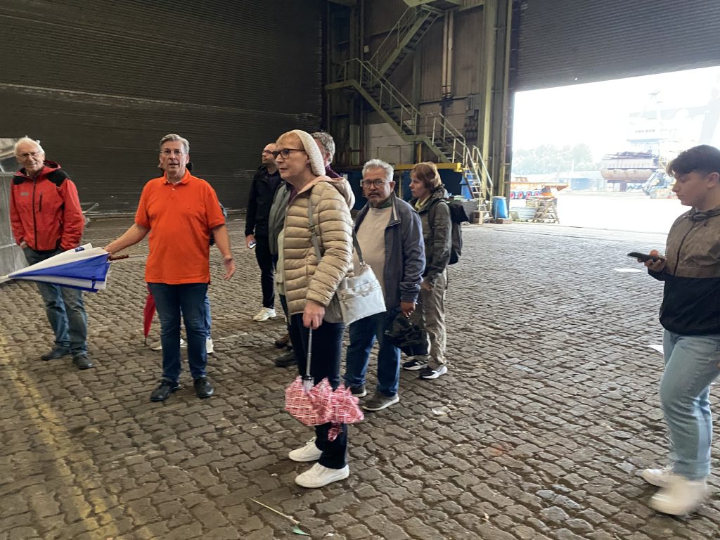 Wir von der Harburger AfA waren heute vor Ort zur Ortsbesichtigung mit dem Sietas-Betriebsratsvorsitzenden Georg Netuschil. Uns und mir ist wichtig, dass der Industriestandort Neuenfelde erhalten bleibt und die verbliebenen Sietas-Mitarbeiterinnen und -mitarbeiter eine sichere Perspektive haben. Dafür werde ich mich einsetzen. Vielen Dank, lieber Georg für die ebenso beeindruckenden wie beklemmenden Einblicke auf’s Sietas-Gelände!