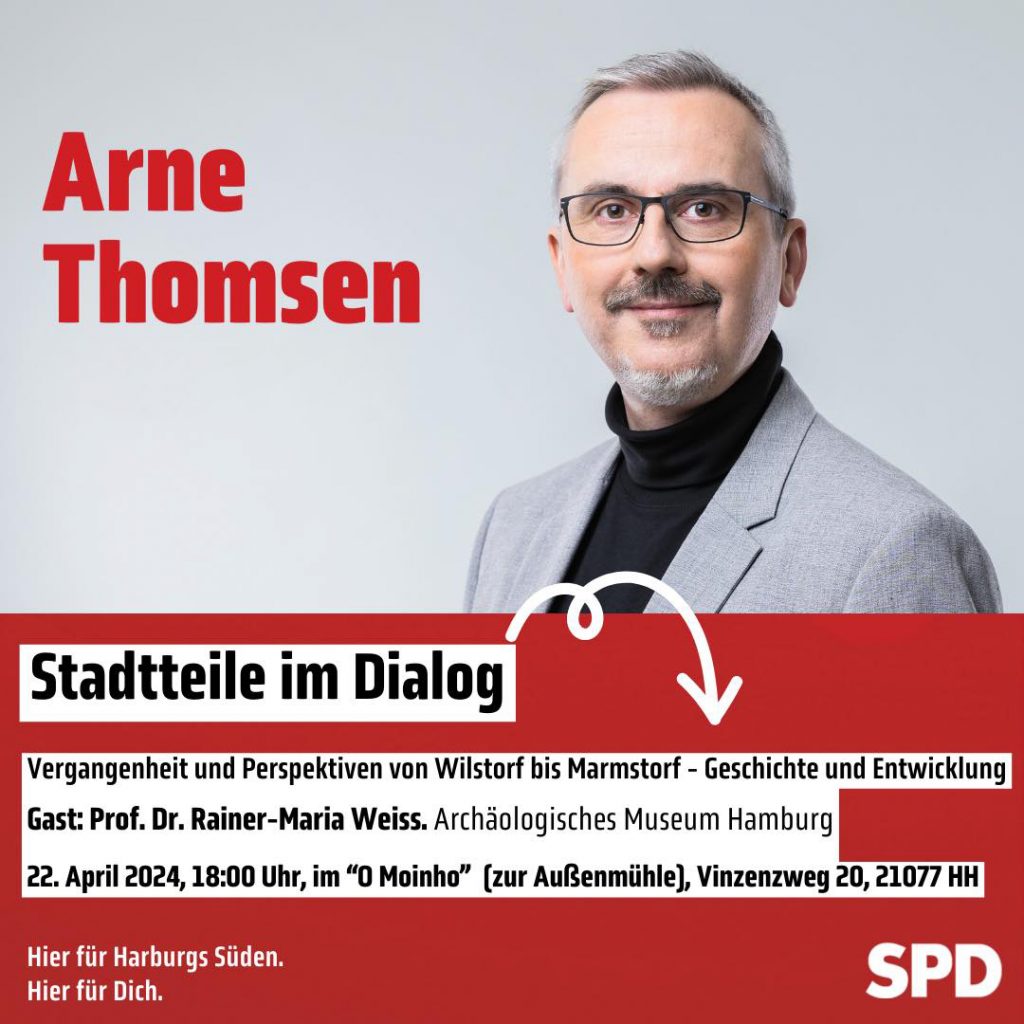 Wir freuen uns sehr, den Leiter des archäologischen Museums, Prof. Dr. Rainer-Maria Weiss als Referenten begrüßen zu dürfen. Gemeinsam werden wir eine Zeitreise unternehmen und die Geschichte sowie die Entwicklung unserer Stadtteile Wilstorf, Rönneburg, Langenbek, Sinstorf und Marmstorf erkunden.