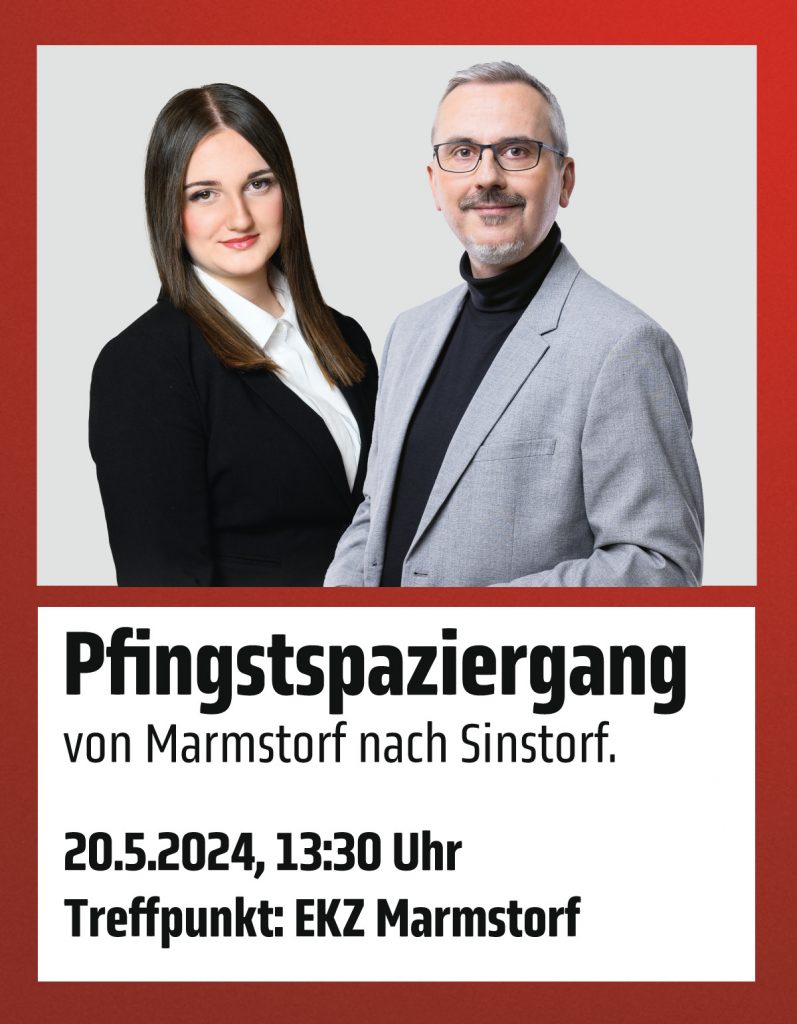 Am Pfingstmontag geht’s weiter, wir treffen uns am Einkaufszentrum Marmstorf und gehen durch Marmstorf und Sinstorf.